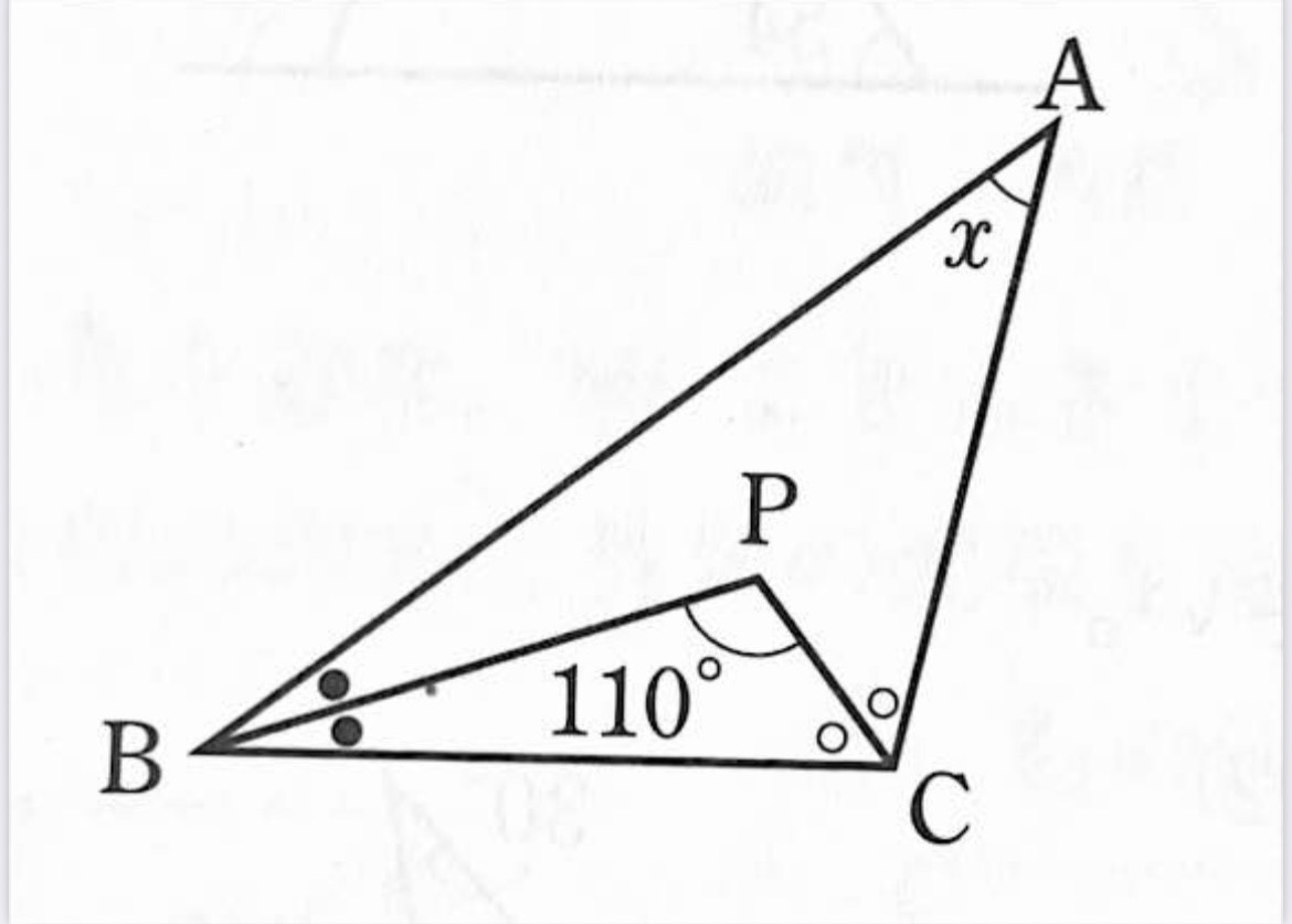 これは、●と○を使ってxの角度を求めていく問題です。